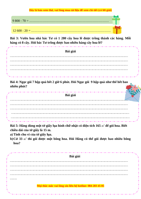 Bài 3: Mai Anh dự định gói hoa tặng mẹ nhân ngày 8/3. Mai Anh mua 72
