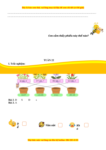 PHIẾU ÔN TẬP CUỐI TUẦN 22 MỤC TIÊU