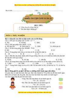 PHIẾU ÔN TẬP CUỐI TUẦN 23 MỤC TIÊU