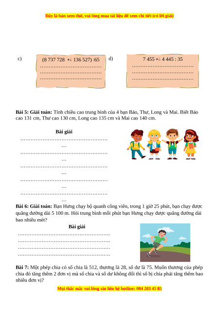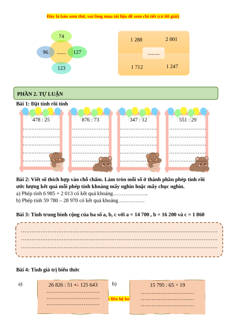 Bài 1: Đặt tính rồi tính 478 : 25 876 : 73 347 : 12 551 : 29 ………………… ………………… ………………… ………………… ………………… ………………… ………………… ………………… ………………… ………………… ………………… ………………… ………………… ………………… ………………… ………………… ………………… ………………… ………………… …………………