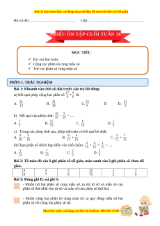 PHIẾU ÔN TẬP CUỐI TUẦN 26 MỤC TIÊU Em vui học toán