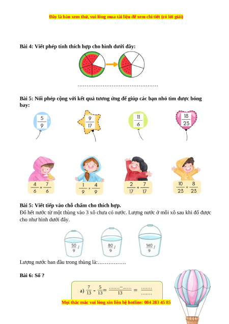 Bài 5: Nối phép cộng với kết quả tương ứng để giúp các bạn nhỏ tìm được bóng bay: