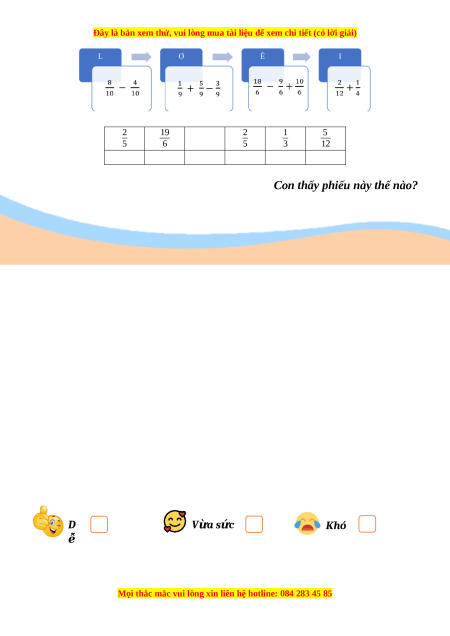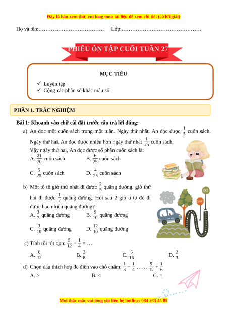 Vậy ngày thứ hai, An đọc được số phần cuốn sách là: 21 6 A. cuốn sách B. cuốn sách 20 25 5 4 C. cuốn sách D. cuốn sách 25 25 2