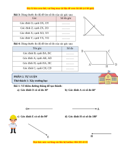 Bài 4: Dùng thước đo độ để tìm số đo của các góc sau: Tên góc Số đo Góc đỉnh B; cạnh BA, BC ……… Góc đỉnh A; cạnh AB, AD ……… Góc đỉnh H; cạnh HA, HC ……… Góc đỉnh C; cạnh CH, CD ……… PHẦN 2. TỰ LUẬN