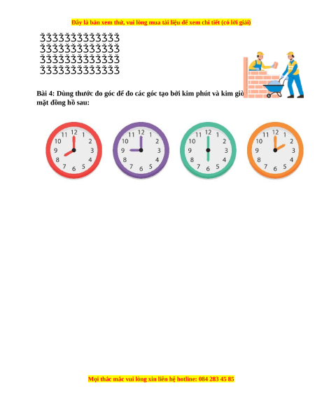 Bài 1: Nối đồng hồ với số đo góc tạo bởi kim giờ và kim phút tương ứng: 90° 120° 30° 150°