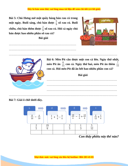 nhất cho tử số của phân số thứ hai và giữ nguyên mẫu số.