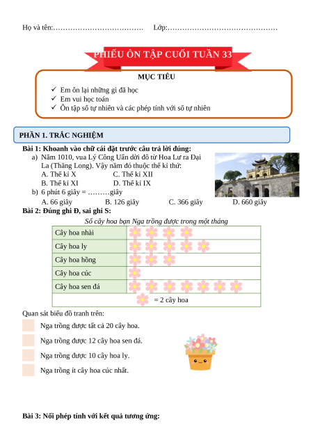 PHIẾU ÔN TẬP CUỐI TUẦN 33 MỤC TIÊU