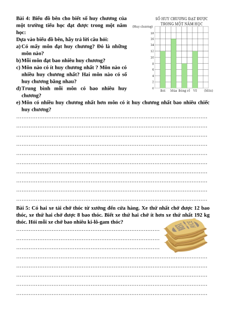 Bài 5: Có hai xe tải chở thóc từ xưởng đến cửa hàng. Xe thứ nhất chở được 12 bao