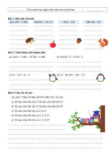 Bài 2: Đặt tính rồi tính: 643 109 + 5 398 589 025 – 54 117 7 856 × 432 948 106 : 125 ………………… ………………… ………………… ………………… ………………… ………………… ………………… ………………… ………………… ………………… ………………… ………………… ………………… ………………… ………………… ………………… ………………… ………………… ………………… ………………… ………………… ………………… ………………… …………………