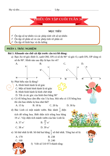 PHIẾU ÔN TẬP CUỐI TUẦN 34 MỤC TIÊU