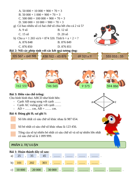 có sáu chữ số là 1 099 999. PHẦN 2. TỰ LUẬN