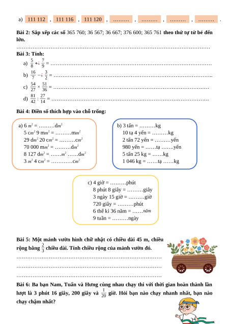 Bài 5: Một mảnh vườn hình chữ nhật có chiều dài 45 m, chiều 2