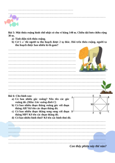 Bài 5: Một thửa ruộng hình chữ nhật có chu vi bằng 140 m. Chiều dài hơn chiều rộng 30 m.