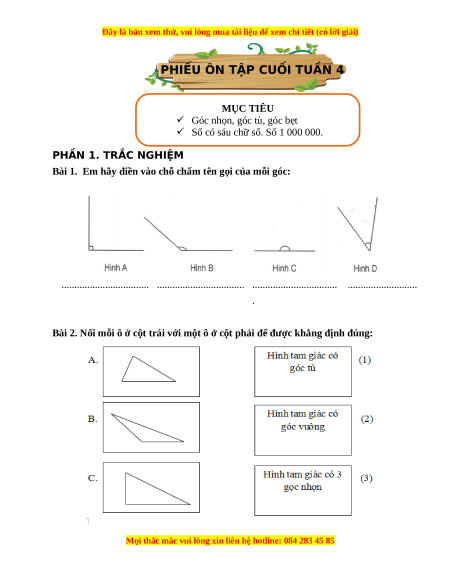PHIẾU ÔN TẬP CUỐI TUẦN 4 MỤC TIÊU