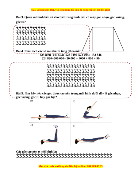 - Hình bên không có góc vuông - Hình bên có 2 góc tù - Hình bên có 5 góc nhọn