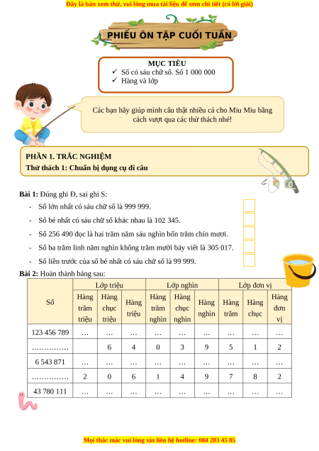 PHIẾU ÔN TẬP CUỐI TUẦN 5 MỤC TIÊU