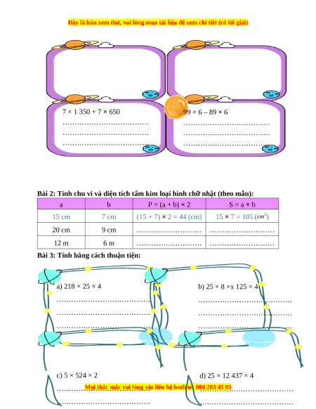 Bài 3: Tính bằng cách thuận tiện: a) 218 × 25 × 4 b) 25 × 8 ×x 125 × 4