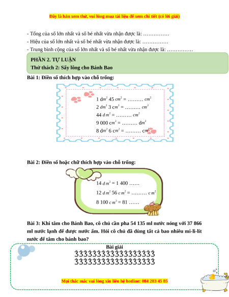 Bài 3: Khi tắm cho Bánh Bao, cô chủ cần pha 54 135 ml nước nóng với 37 866