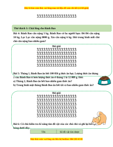 Bài 5: Tháng 1, Bánh Bao ăn hết 100 056 g thức ăn hạt. Lượng thức ăn tháng