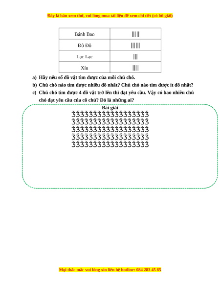 Bài 6: Cô chủ kiểm tra kĩ năng tìm đồ vật của các chú chó và ghi lại kết quả ở bảng dưới đây: Tên Số đồ vật tìm được