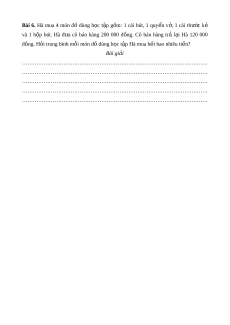 Bài 6. Hà mua 4 món đ dùng h c t p g m: 1 cái bút, 1 quy n v , 1 cái th c kồ ọ ậ ồ ể ở ướ ẻ