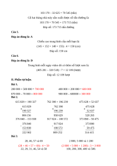 (65 – 18) + 35 = 47 + 35 = 82 V y ậ Giá trị c a ủ bi u ể th c ứ 35 + 18 + 65 b ng ằ v i ớ giá tr ịc a ủ bi u ể th c ứ (35 + 65) + 18 Câu 3. Đáp án đúng là: B Số trung bình c ng