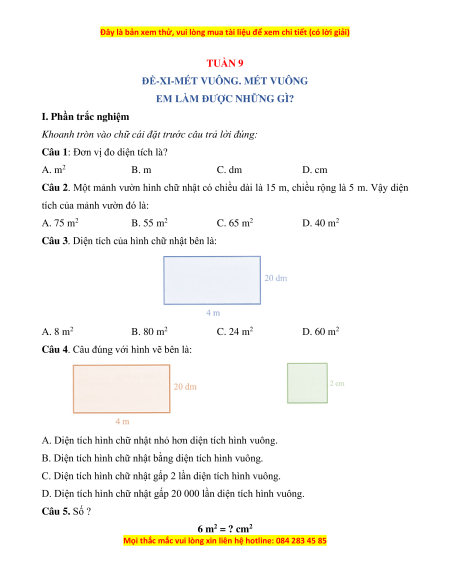 ĐỀ-XI-MÉT VUÔNG. MÉT VUÔNG