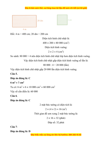 D. Diện tích hình chữ nhật gấp 20 000 lần diện tích hình vuông. Câu 5. Số ? 6 m2 = ? cm2