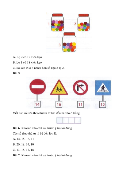 C. Số kẹo ở lọ 3 nhiều hơn số kẹo ở lọ 2. Bài 5.