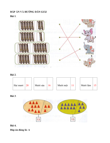 ĐÁP ÁN VÀ HƯỚNG DẪN GIẢI Bài 1. Bài 2. Hai mươi 20 Mười sáu 16 Mười một 11 Mười lăm 15 Bài 3. Bài 4.