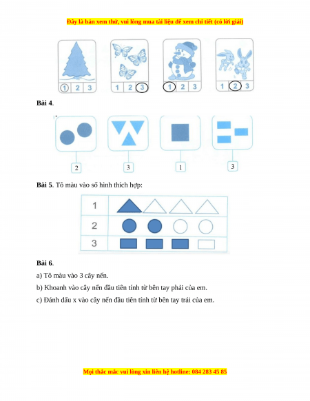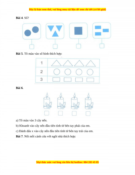 Bài 5. Tô màu vào số hình thích hợp: Bài 6. a) Tô màu vào 3 cây nến.