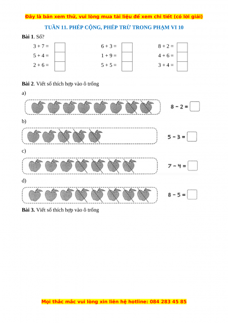 TUẦN 11. PHÉP CỘNG, PHÉP TRỪ TRONG PHẠM VI 10