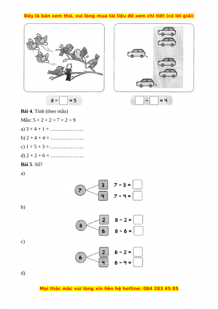 d) 2 + 2 + 6 = ……………….. Bài 5. Số? a) b) c) d)