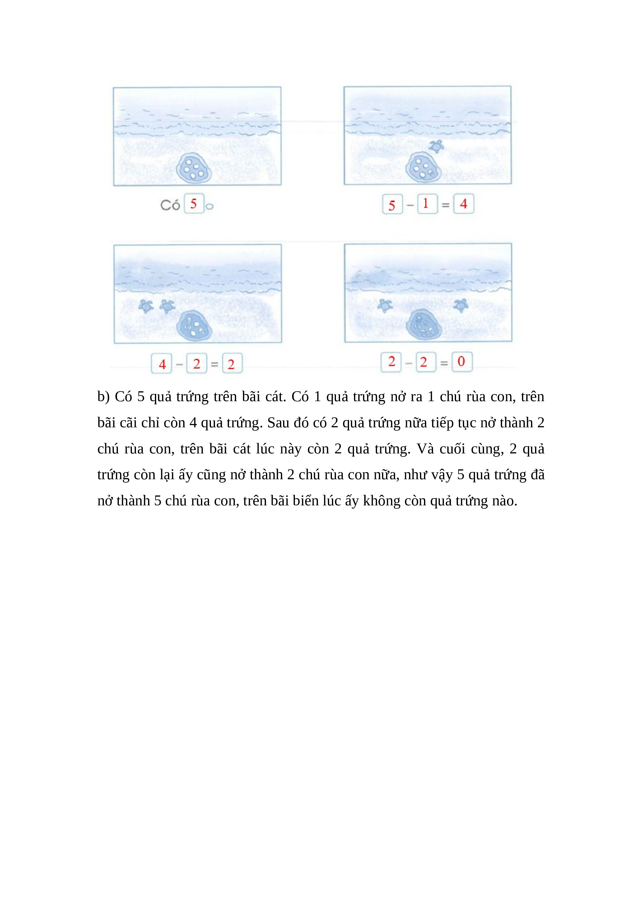 b) Xem tranh rồi tập kể chuyện theo mỗi phép tính trên.
