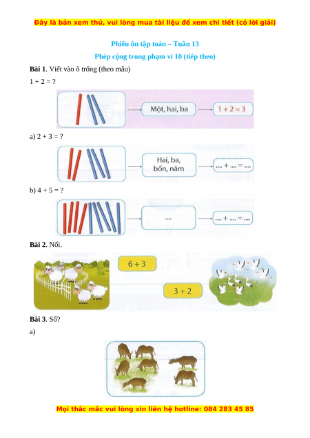 Phép cộng trong phạm vi 10 (tiếp theo)