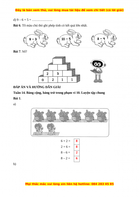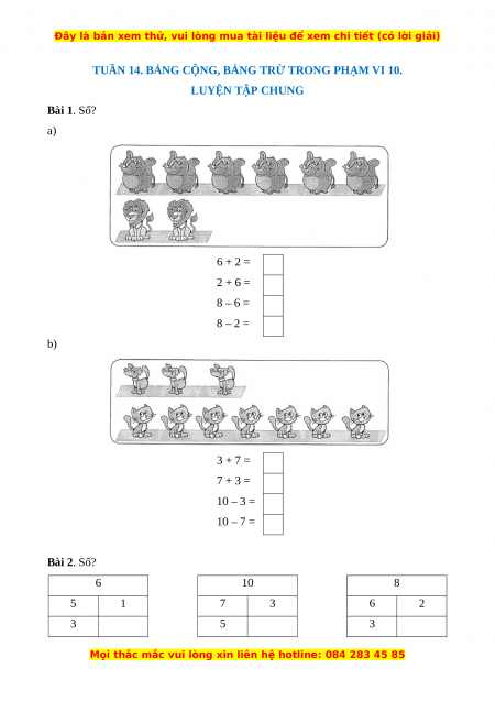 TUẦN 14. BẢNG CỘNG, BẢNG TRỪ TRONG PHẠM VI 10.