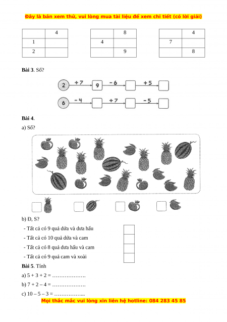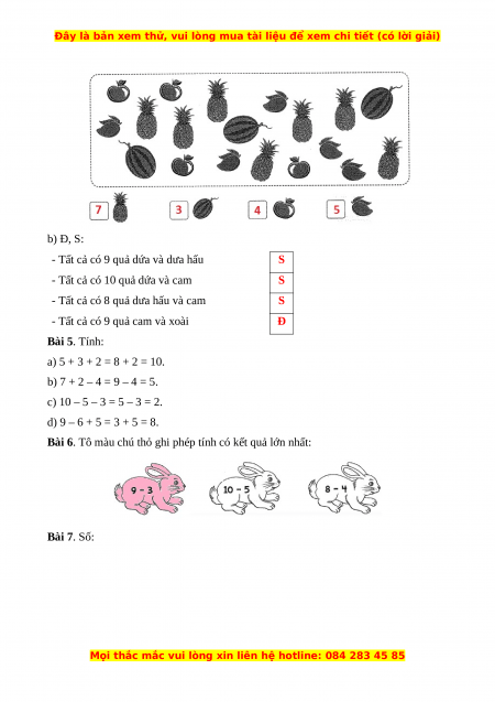 - Tất cả có 9 quả cam và xoài Bài 5. Tính