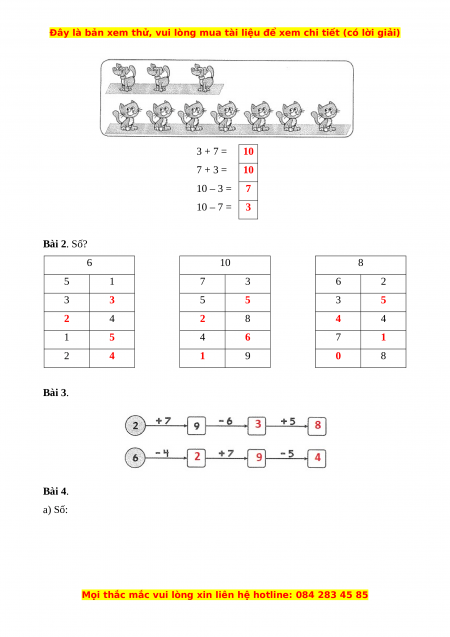 3 + 7 = 10 7 + 3 = 10 10 – 3 = 7 10 – 7 = 3 Bài 2. Số? 6 10 8 5 1 7 3 6 2 3 3 5 5 3 5 2 4 2 8 4 4 1 5 4 6 7 1 2 4 1 9 0 8 Bài 3. Bài 4. a) Số:
