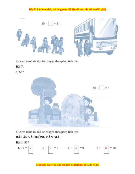 ĐÁP ÁN VÀ HƯỚNG DẪN GIẢI Bài 1. Số? 6 + 1 = 7 3 + 5 = 8 4 + 5 = 9 2 + 8 = 10
