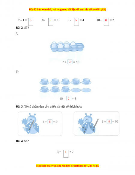 7 – 1 = 6 8 - 5 = 3 9 - 5 = 4 10 - 8 = 2 Bài 2. Số? a) b)