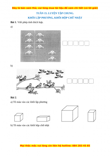 Bài 1. Viết phép tính thích hợp. a) b) Bài 2.