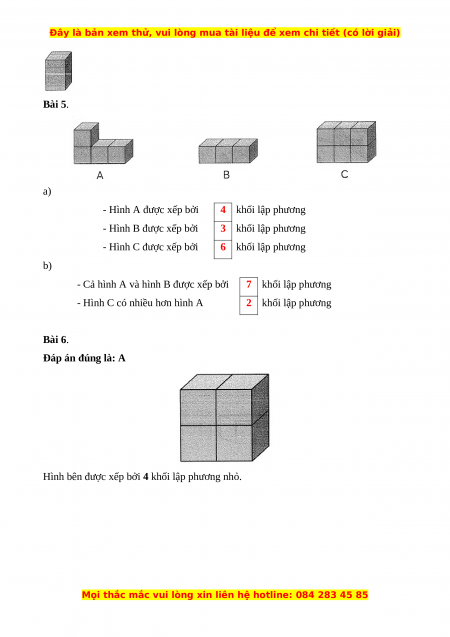 - Cả hình A và hình B được xếp bởi khối lập phương