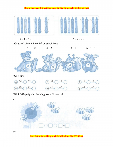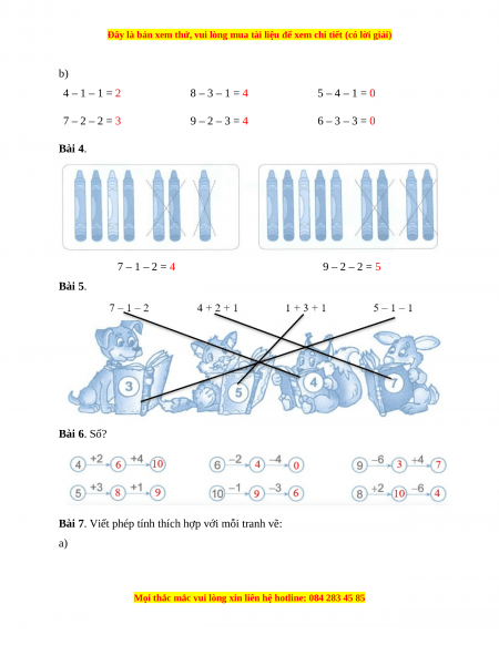 b) 4 – 1 – 1 = 2 8 – 3 – 1 = 4 5 – 4 – 1 = 0 7 – 2 – 2 = 3 9 – 2 – 3 = 4 6 – 3 – 3 = 0 Bài 4. 7 – 1 – 2 = 4 9 – 2 – 2 = 5 Bài 5. Bài 6. Số?