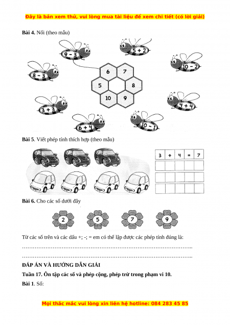 Tuần 17. Ôn tập các số và phép cộng, phép trừ trong phạm vi 10.