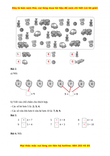 ÔN TẬP CÁC SỐ VÀ PHÉP CỘNG, PHÉP TRỪ TRONG PHẠM VI 10 Bài 1. Số? Bài 2. a) Nối (theo mẫu)