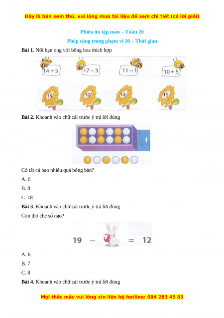 Phiếu ôn tập toán – Tuần 20
