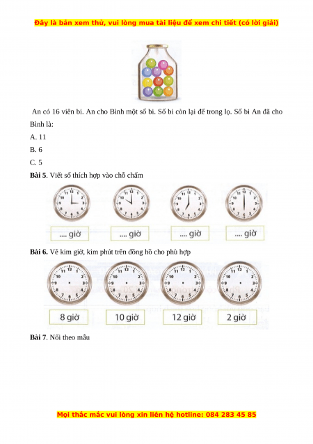 Bài 6. Vẽ kim giờ, kim phút trên đồng hồ cho phù hợp
