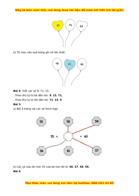 b) Các số vừa lớn hơn 55 vừa bé hơn 60 là: 56, 57, 58, 59. Bài 6.