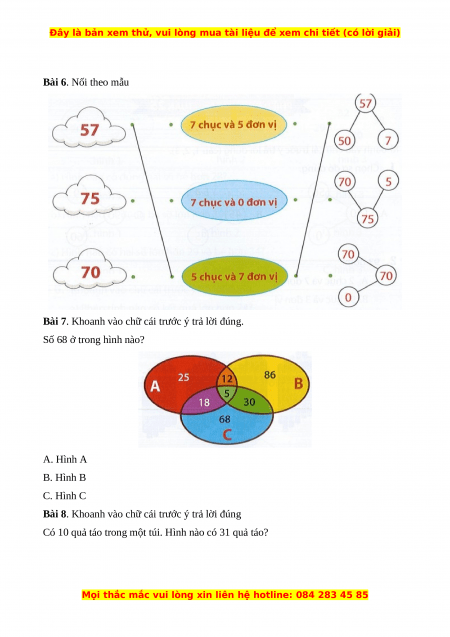 Bài 7. Khoanh vào chữ cái trước ý trả lời đúng. Số 68 ở trong hình nào? A. Hình A B. Hình B C. Hình C