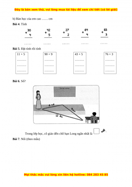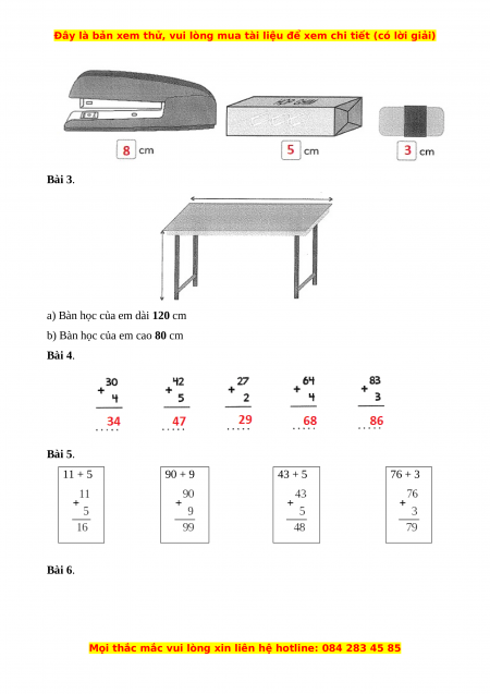 b) Bàn học của em cao …… cm Bài 4. Tính